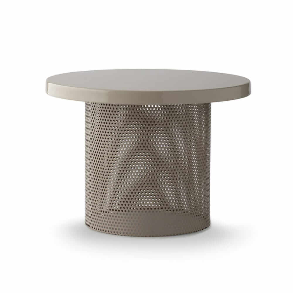 Crafted from powder-coated iron with a perforated bottom, this small but mighty side table has a modern look and works both inside and outdoors.