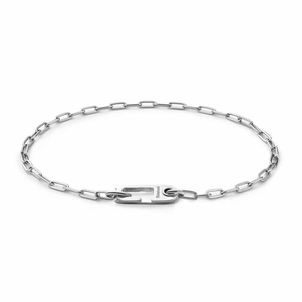 Made from polished sterling silver, this bracelet features small elongated open rings and a hardware inspired scissor clasp closure for a laid-back yet luxurious feel.