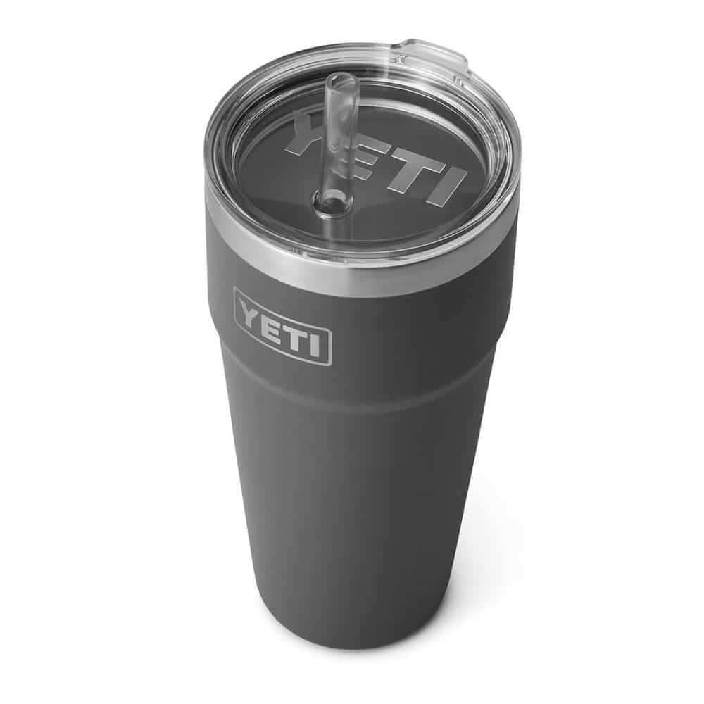 YETI’s oversized Rambler cup keeps 26 ounces of liquid cold and hot for an extended time and the durable straw makes taking swigs quick and easy.