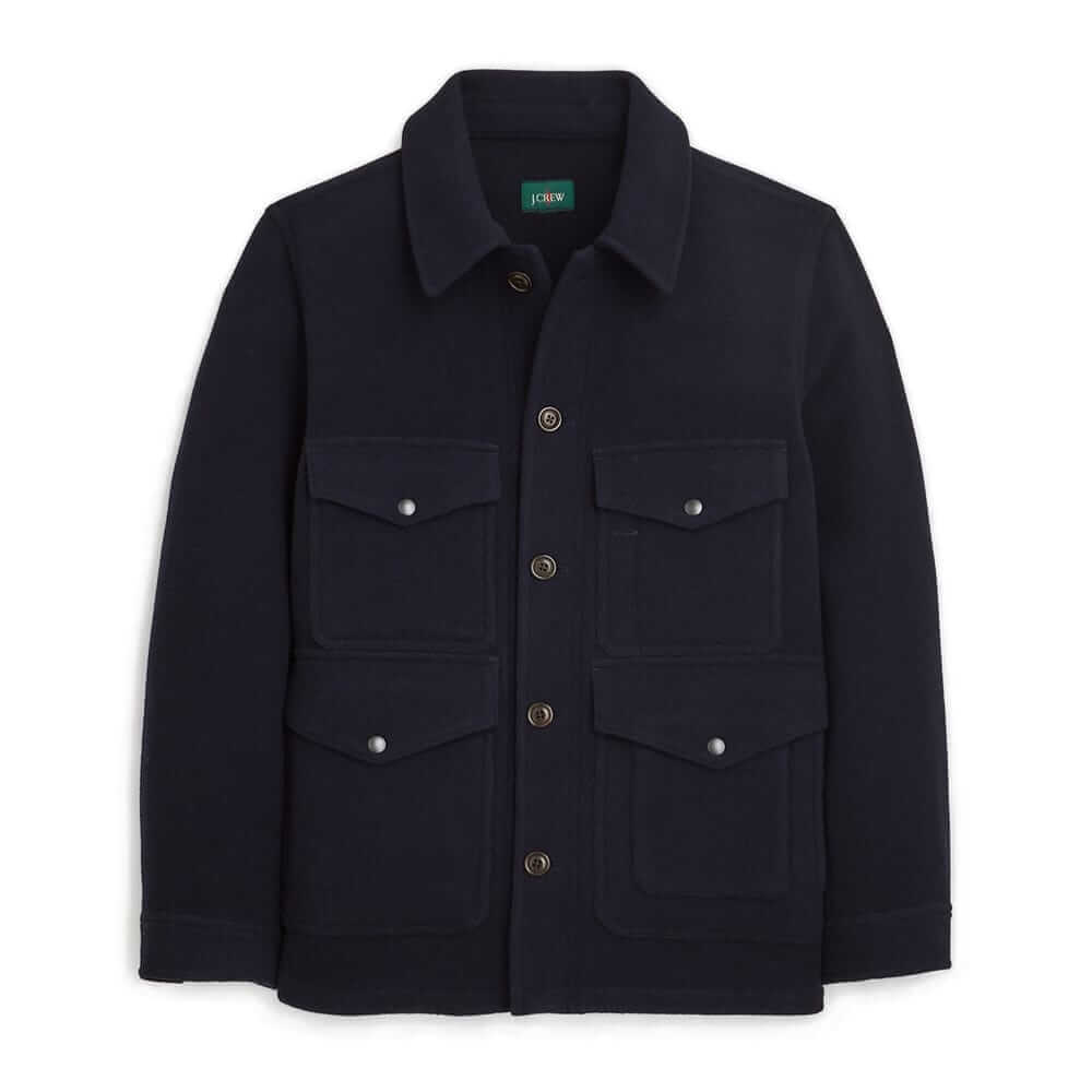 This rugged cruiser jacket is cut from a double-faced wool, meaning the fabric has two distinct sides—the interior of this jacket is brushed for softness.