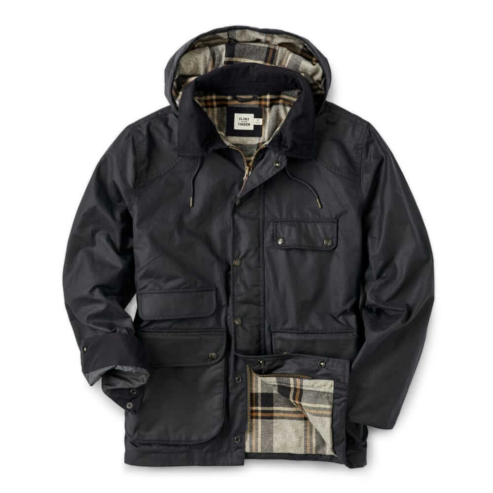 Flint and Tinder brought this jacket back in 2024, now with a removable hood and warm flannel lining, while the popular moleskin-lined collar and cuffs remain.