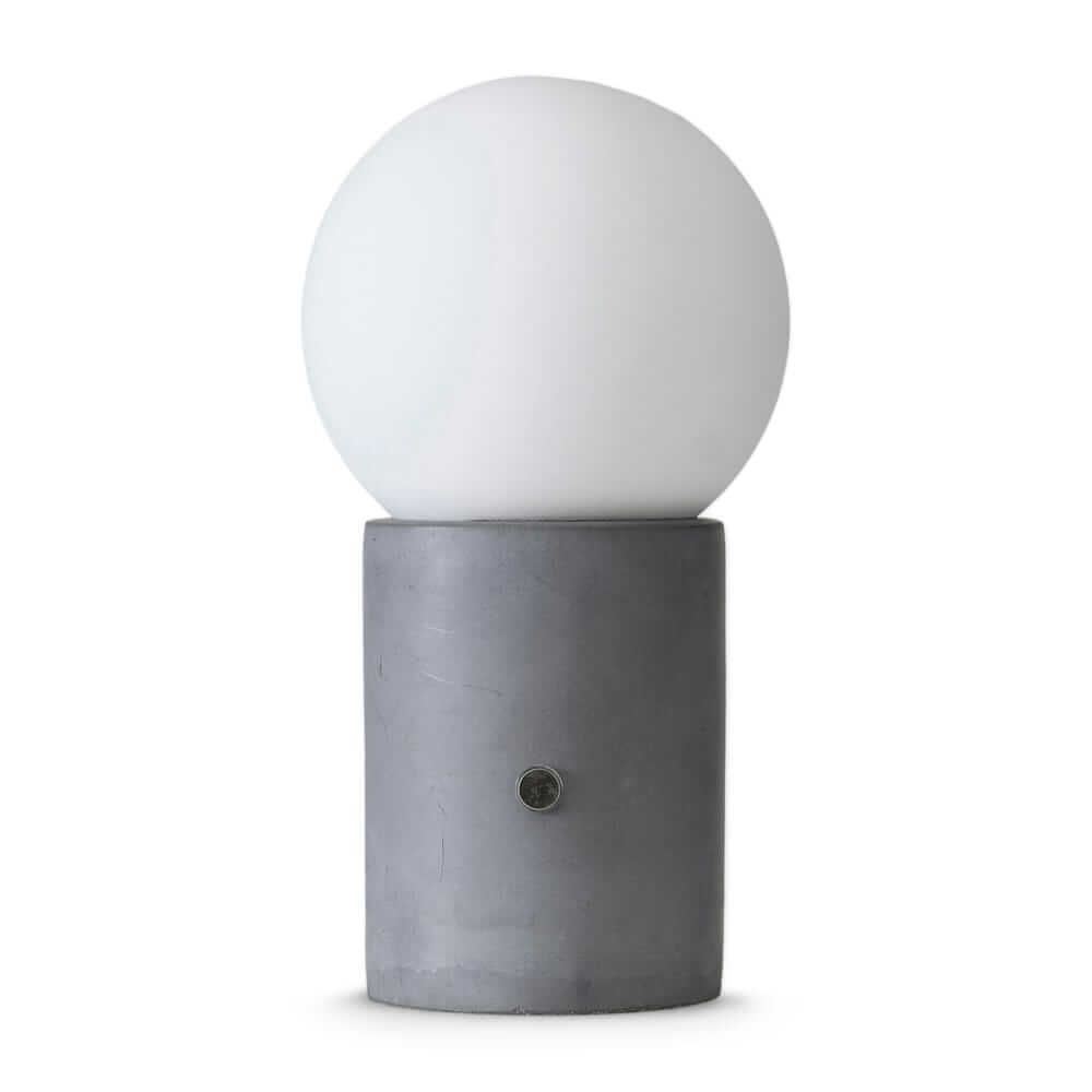 With a design that’s streamlined and stylish, the Kai lamp features a sturdy yet lightweight cement base and a frosted globe with a dimmer.