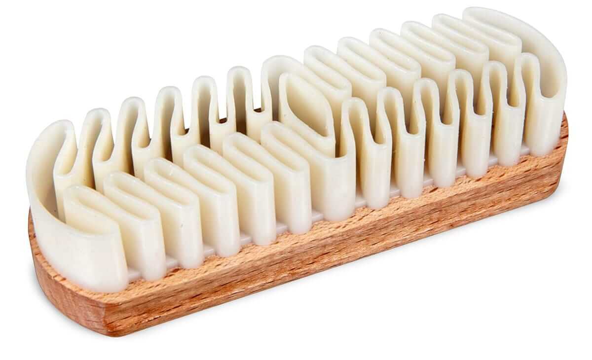 According to the experts at Crockett & Jones, the well-known brand of fine English footwear, “Suede can often be revived using steam from the kettle and gently cleaning with a rubber suede brush.” Start the process by brushing your shoes with a regular shoe brush to remove all surface particles and dirt. Their preferred choice here is to use a horse hair brush.