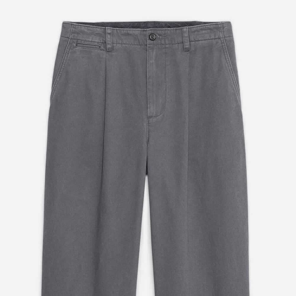 This pleated pant is a new silhouette from the brand, cut from a premium twill made from 100% cotton. They have a great drape and a corduroy inner waistband for added comfort.
