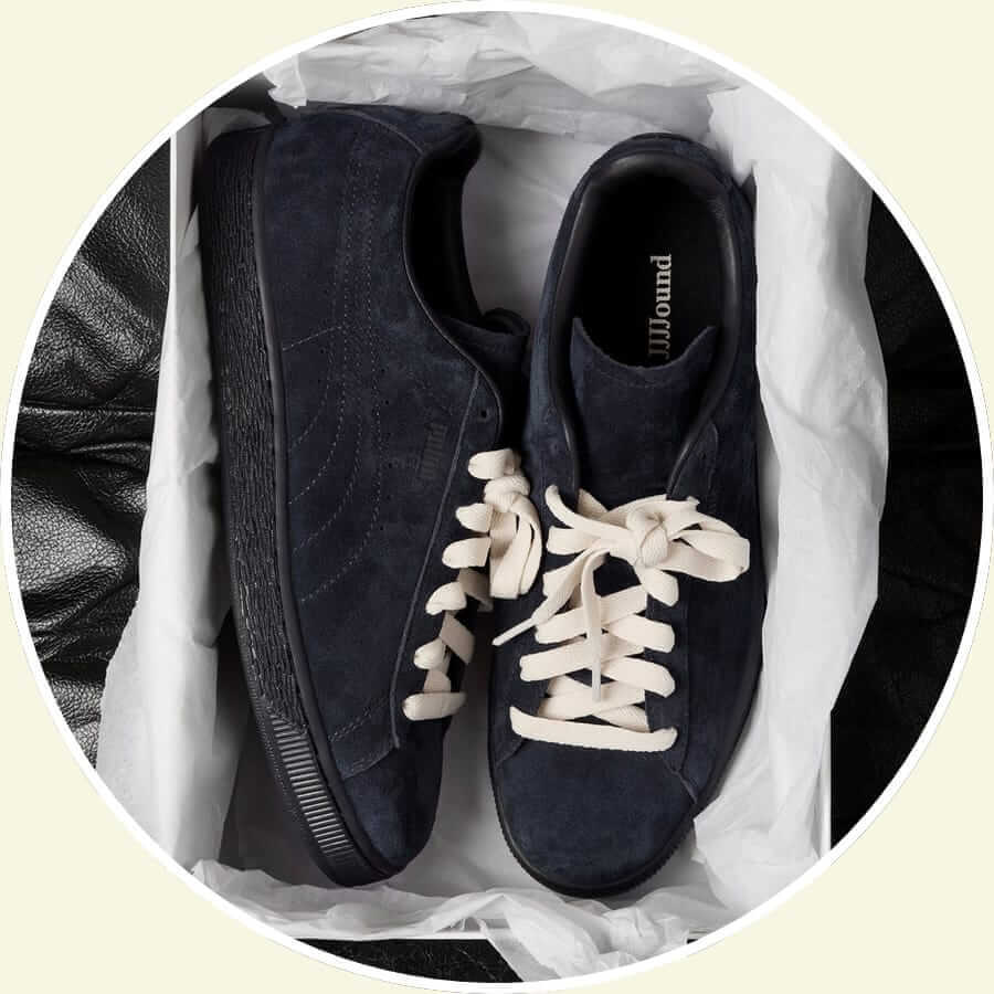 JJJJound and PUMA team up again for Fall/Winter 2025, keeping things clean and classic. Following their most recent Mostro collab, the duo is dropping two fresh takes on some legendary sneakers: The Speedcat in smooth brown or black leather, and the Suede in a rich navy with off-white and black trim. Each pair stays true to JJJJound’s minimalist ethos—think tonal Formstrips, discreet wordmarks, and just the right amount of polish. Available October 16 |
