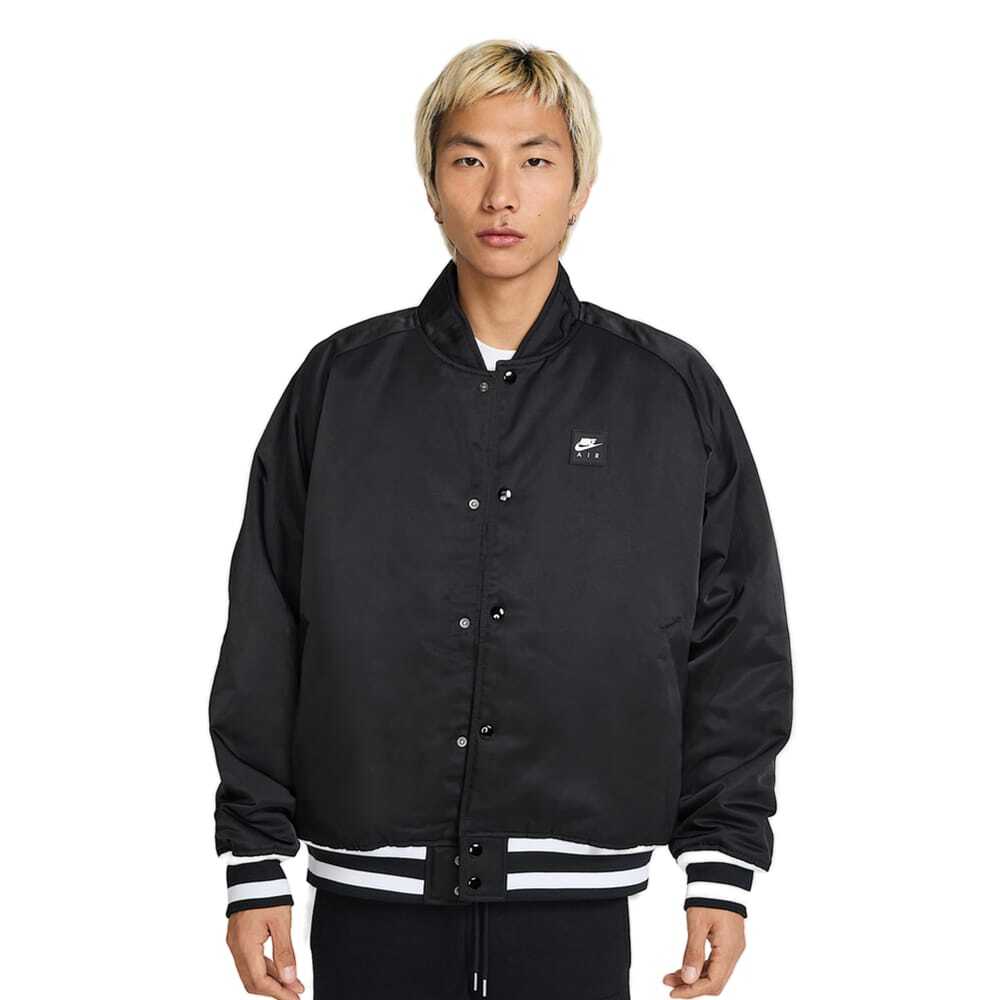 | ![]() This woven varsity jacket gets all the retro details right: thick striped ribbing at the hem and cuffs, snap buttons at the front and a roomy, oversized fit.