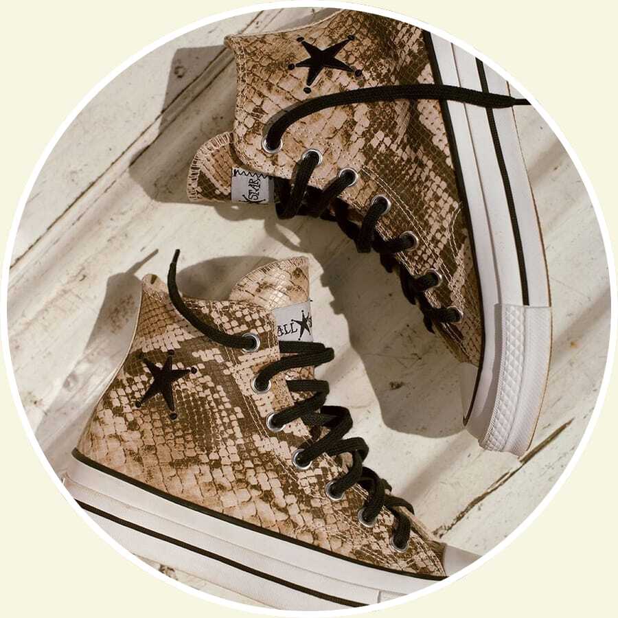 Stüssy and Converse are regular collaborators, but their latest shoe has a lot of people talking. It features a snake-inspired design with faux reptile skin covering the entire upper of the high-top Chuck Taylor. Even Converse’s All-Star branding is obscured by the scaly stuff (although, Stüssy’s star-shaped logo does appear, embroidered onto the outside). Available Oct. 11 at Stüssy |