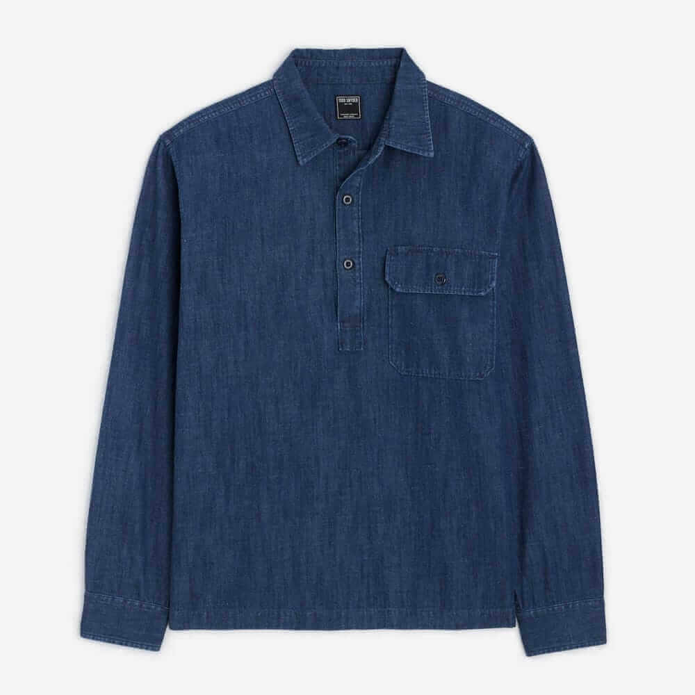 This is one of those denim shirts that gets better with age. And it's built so that you can have it for decades. The pullover has a deep placket, making layering easy.