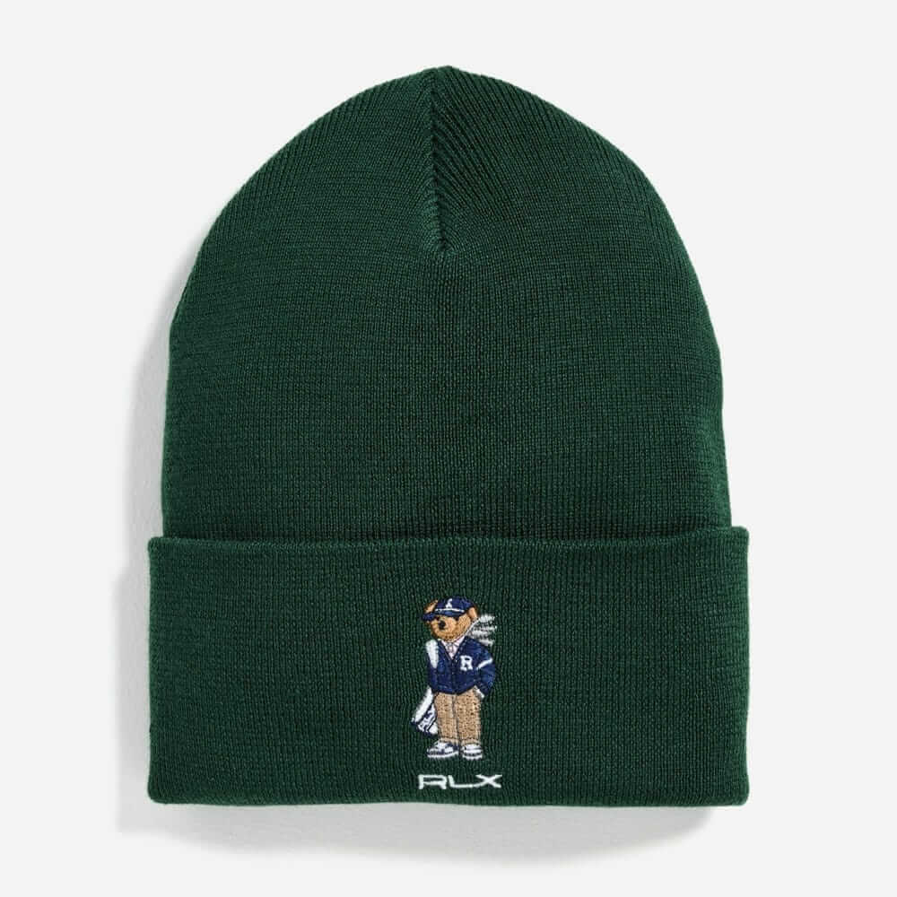 From Ralph Lauren’s RLX sport line, this merino wool beanie is embroidered with the label’s beloved bear, kitted out in golf gear.