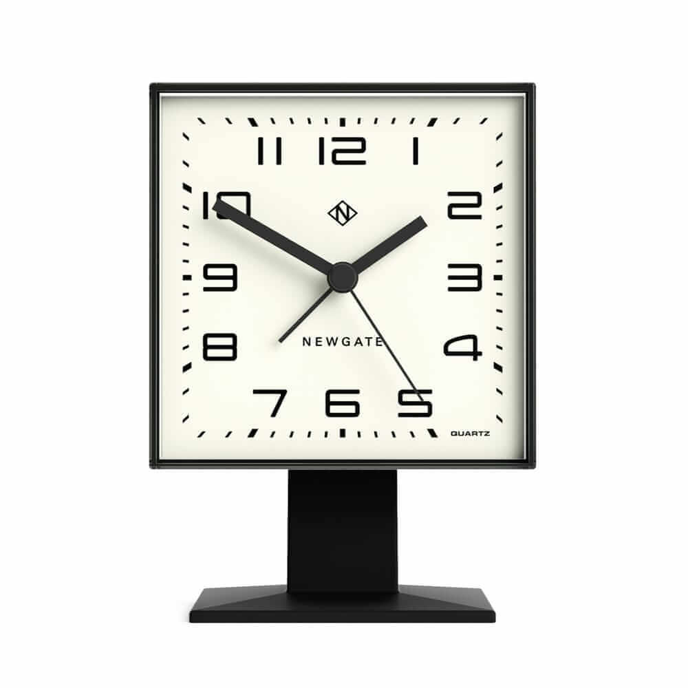 Brimming with sharp lines and midcentury aesthetics, this Newgate clock features a sleek square case with a matte black finish. We have one at the Valet. office.