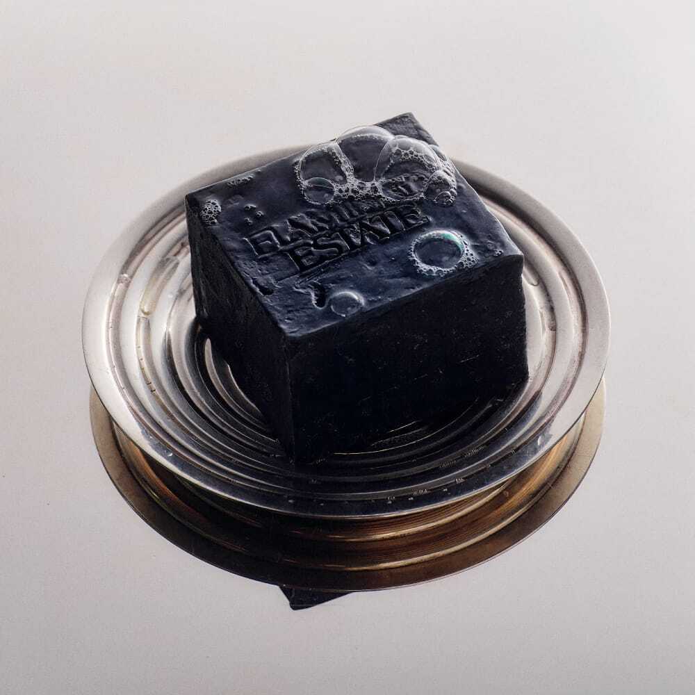 A big brick of purifying soap that smells like fresh-cut California lavender. Lavender activated charcoal soap, |