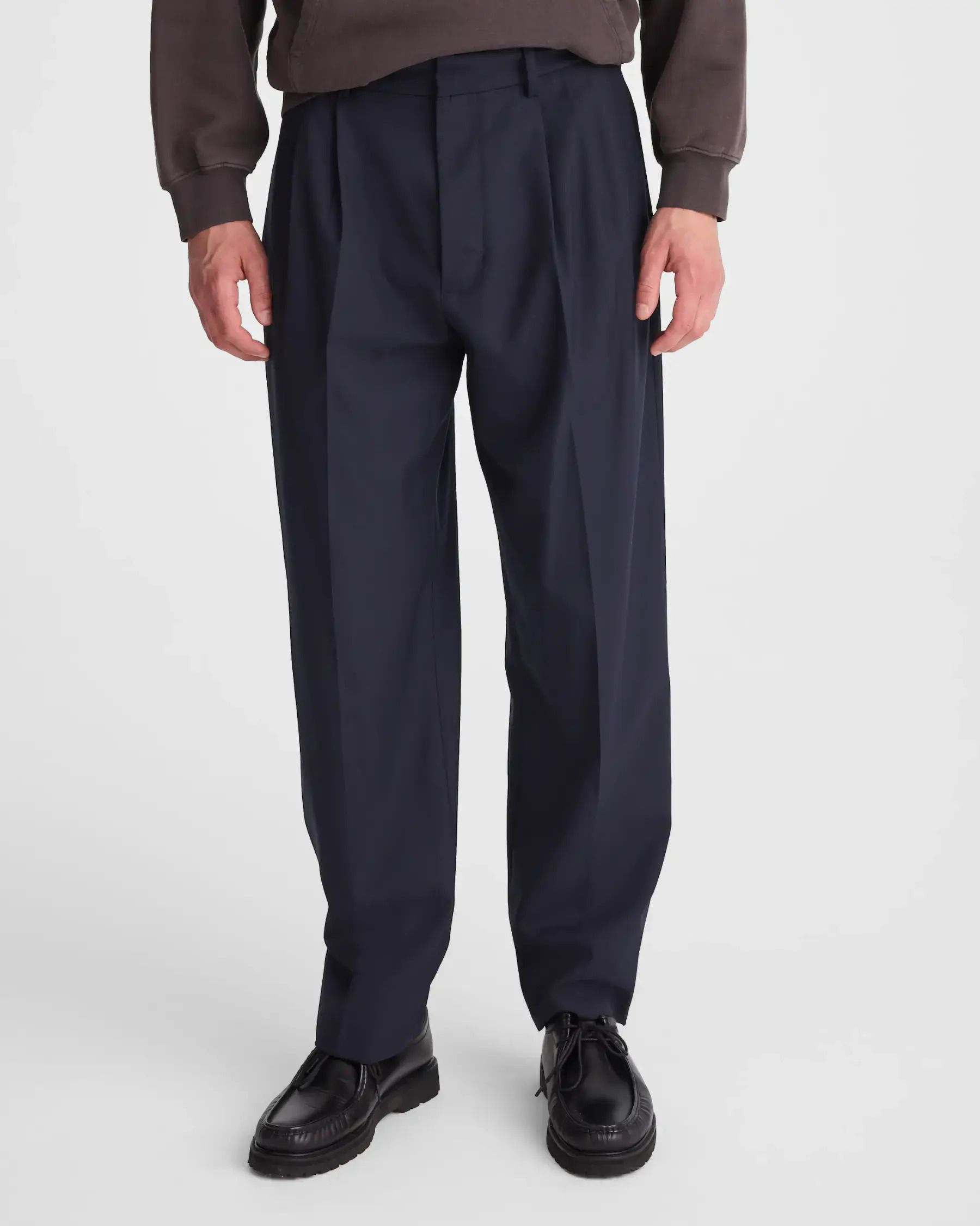 A refined, relaxed trouser cut from a partially-recycled wool-blend twill.
