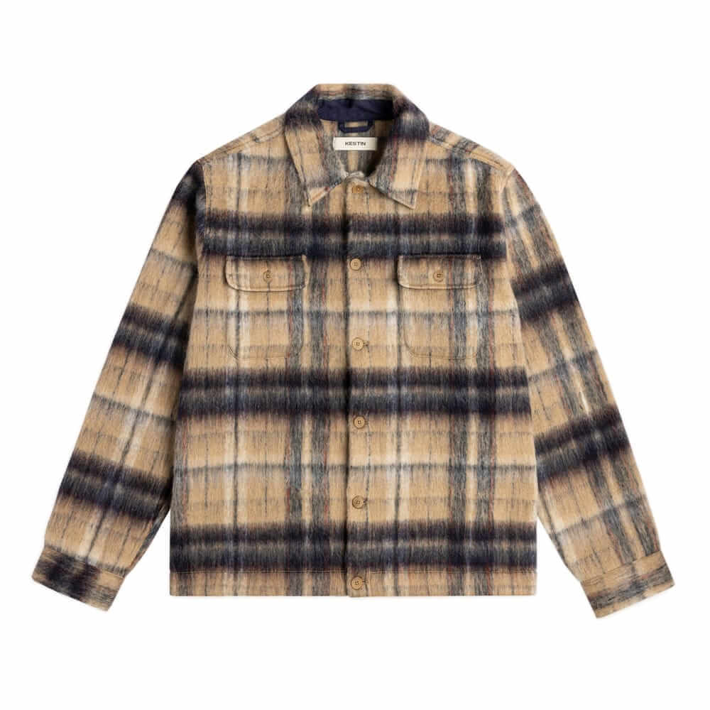 With its buttoned front placket, straight hem and point collar, this overshirt presents a classic trucker silhouette, but the brushed wool-blend fabric is all Kestin.