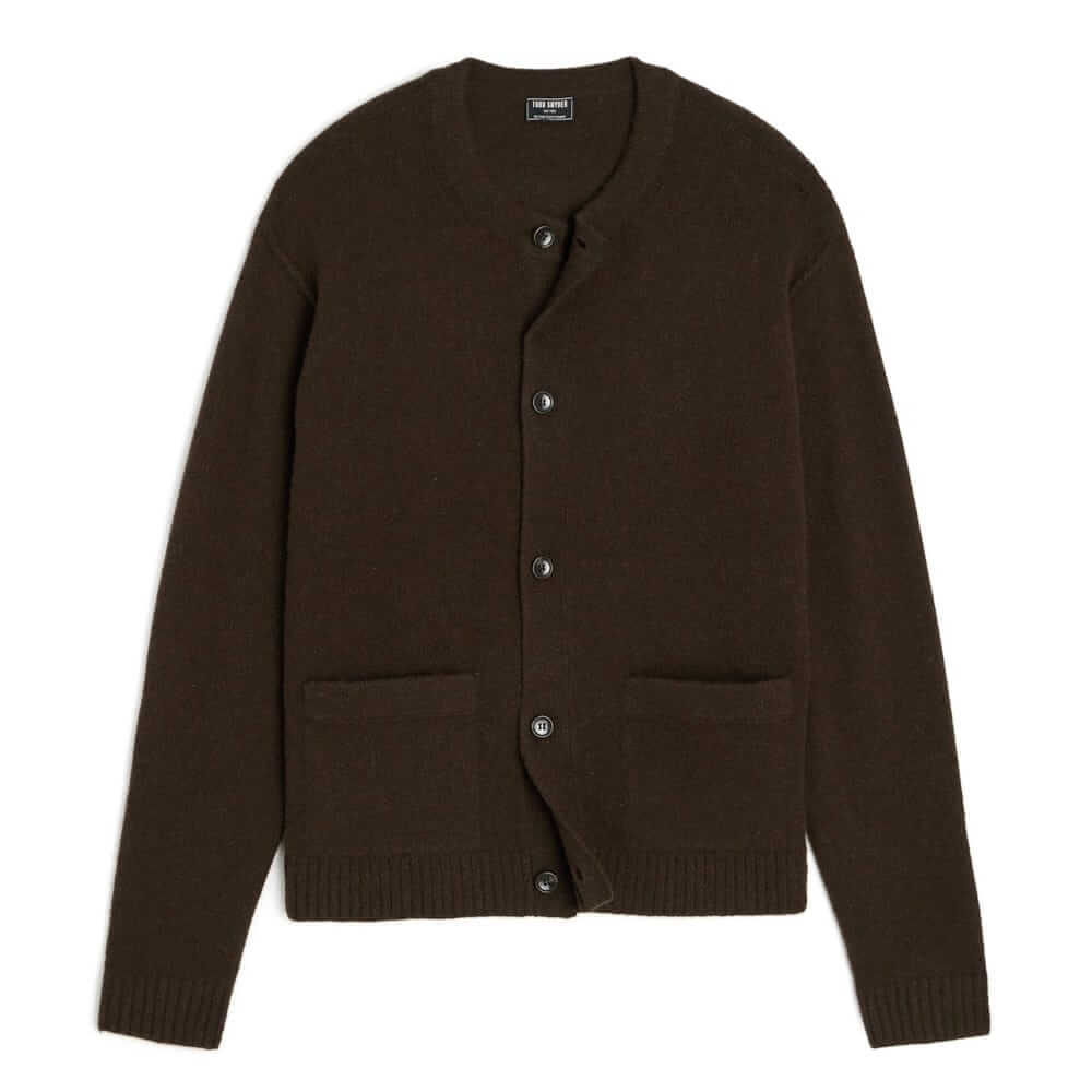 The yarn in this handsome crewneck cardigan is a recycled Italian cashmere in a smooth seven-gauge knit—the perfect weight to wear year-round.