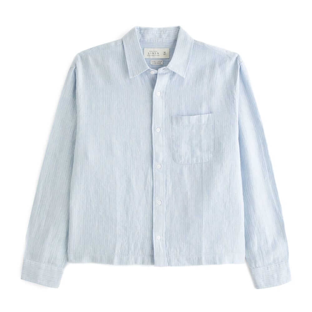 Get ready for summer early with A&F’s comfortable long-sleeve button-up shirt in this breezy 100% linen fabric and new cropped length.