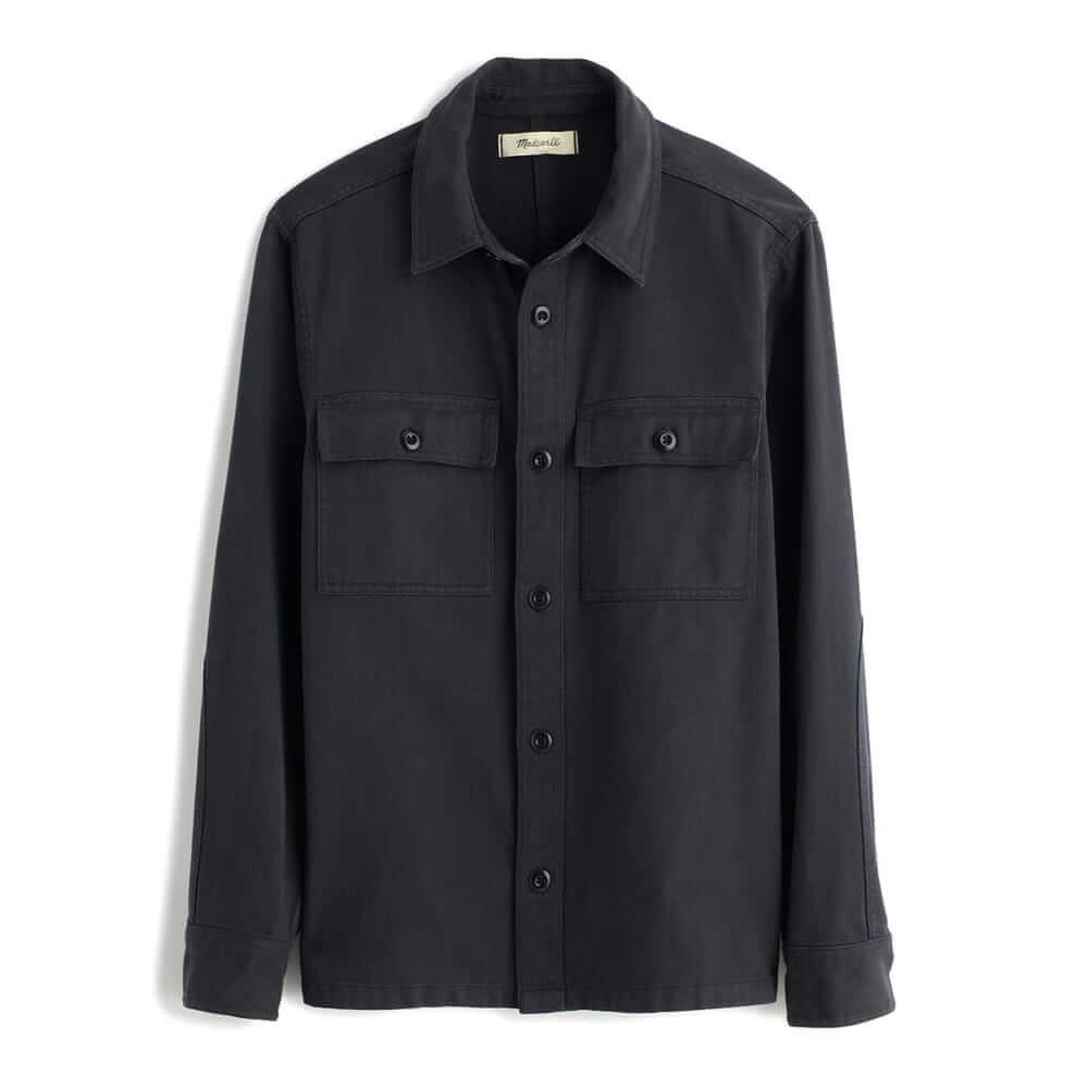This garment-dyed workshirt features two flap pockets on the front and a straight hem for a more cropped, boxy fit.