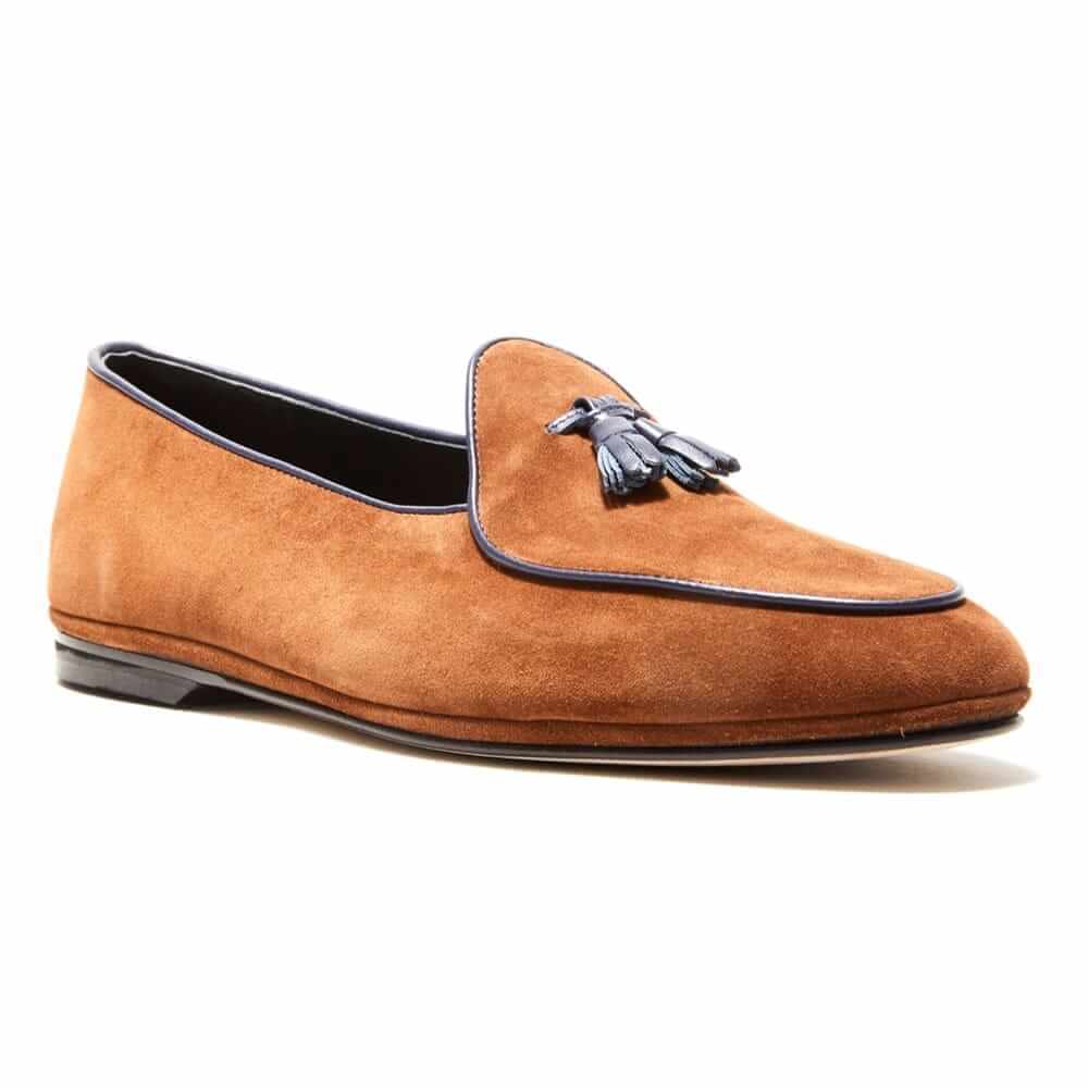 These Italian-made loafers are crafted with a suede leather outer and a comfortable, flexible leather sole, then finished with a classic leather trim.