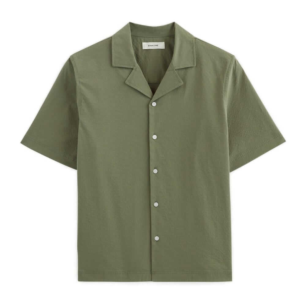 Everlane's camp shirt collar is made with the brand's ultra soft organic cotton seersucker fabric finished with a little stretch.