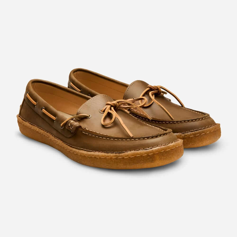 These ruggedly handsome camp mocs are handmade in Portugal, using buttery soft European leathers and supportive crepe rubber outsoles.